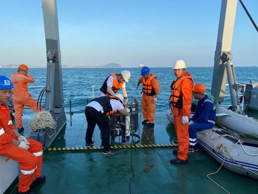 11月4日下午,科考团队抵达汕尾市品清湖码头登船。待试验设备调试检测完成后,科考船启航并于5日晚抵达珠江口万山群岛附近海域预定锚区。6日至9日科考团队沿规划航线在珠江口内伶仃洋开展考察采样工作,团队成员团结协作,克服风浪高温等不利因素顺利完成了超过30个测点数据及样品采集任务。  科考团队对观测点处海水诸多参数进行随船或采样测试,探索盐度、温度、pH值、DOC含量、DIC含量、海洋微塑料含量等随深度的变化规律。同时,对表层淤泥进行了抓斗式采样,着重考虑近岸沉积条件下淤泥质土的物理力学性质以及空间变异特性。这为构建面向水生态-水环境-水资源的系统调控模型提供了实测数据支撑。