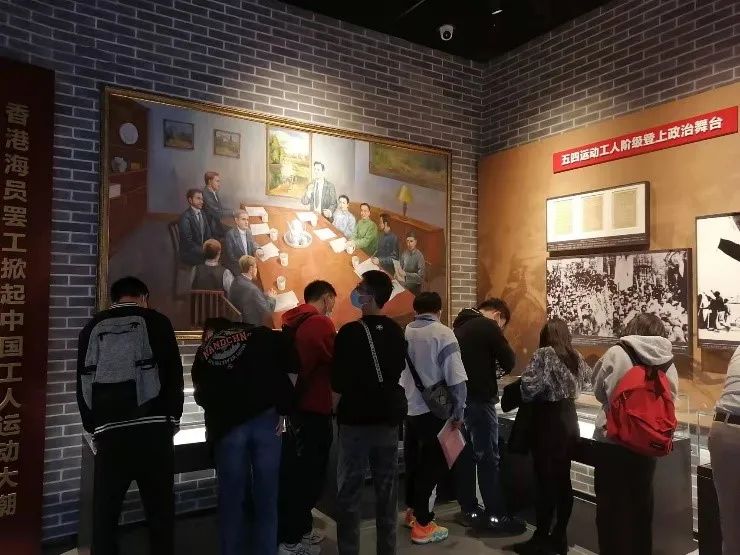 在林伟民与中国早期工人运动史迹陈列馆里,大家通过观看历史纪录片、展出的珍贵史料图片和物品,大家了解了中国早期工人运动的杰出领导人林伟民同志的生平事迹,了解其参与和领导的香港海员大罢工、上海海员大罢工、省港大罢工的情况,也对中国早期工人运动的起源、发展和影响等有了深入学习。林伟民、苏兆征等革命先烈一生致力于救国救民,他们英勇无畏的革命精神和坚定的理想信念让大家肃然起敬,深深钦佩 。