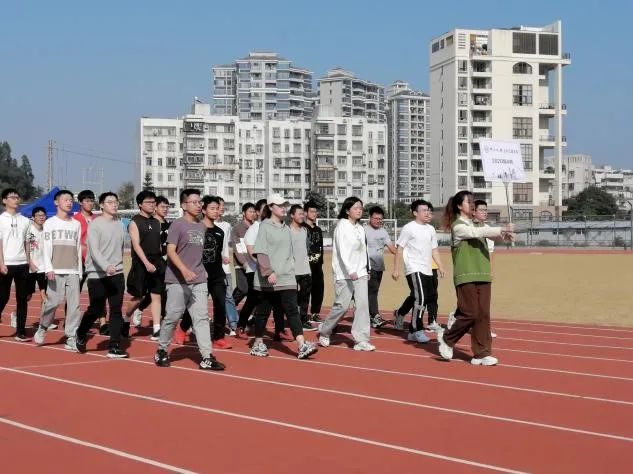 冬日的阳光洒在红色的塑胶跑道上,本科生各班代表队方阵整齐划一地入场,同学们昂首挺胸地从主席台前列队走过,响亮的口号、饱满的精气神,博得主席台和观众席上发出阵阵喝彩。