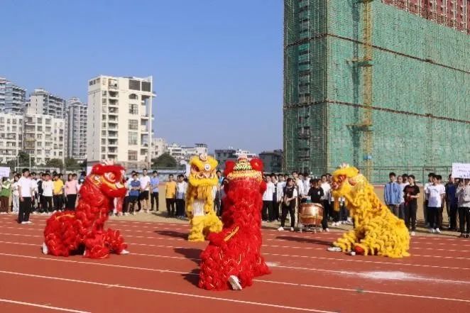 方阵入场后,精彩的开幕式表演呈现在师生面前。中山大学武术协会带来精彩的舞狮表演。只见两只黄舞狮、两只红舞狮踩着鼓点,精神抖擞地走近主席台前,灵活的动作配合咏春、长枪、长棍等让人眼花缭乱的功夫表演,真是精彩绝伦。