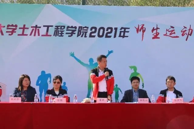 表演后,林凯荣副院长致辞,董杰同学代表比赛裁判员宣誓,梁志豪同学代表运动员宣誓。随着曹新书记大声宣布——太阳集团tyc862021年师生运动会开幕,我院运动会各个比赛项目正式开始。