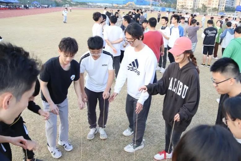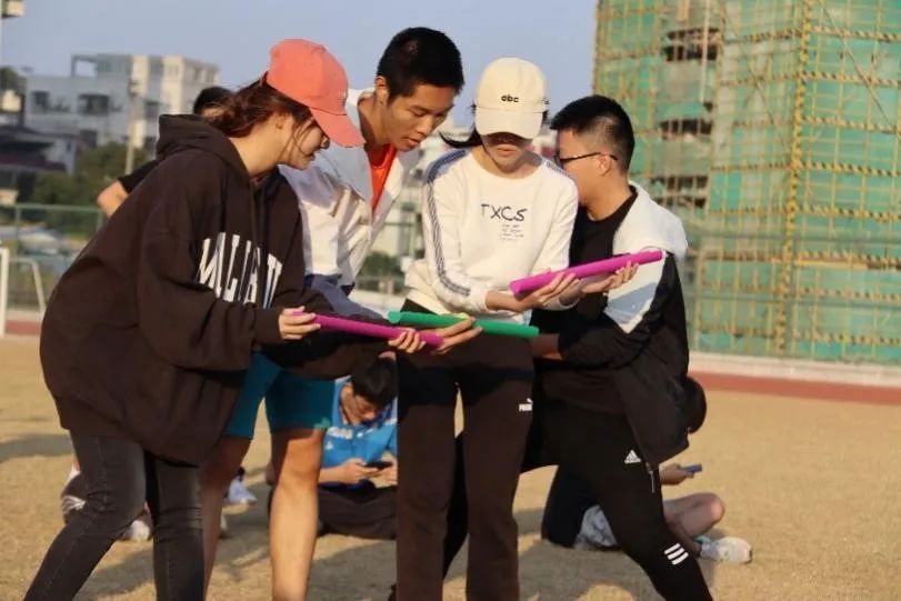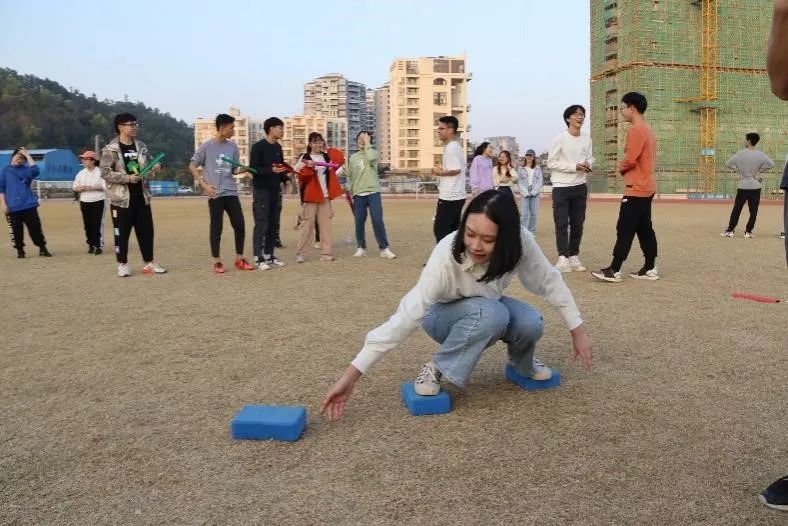 同时开展的还有趣味团体项目和竞技类项目。最具有土木特色的可谓是“搬砖人搬砖魂”这个项目了,同学们灵活地一蹲一起,踩着小小的“砖块”走向终点。而同学们的默契程度在“珠行万里”、“不倒森林”等团体赛中得到了极大的考验。伙伴们要一起思考通关的方法,因为趣味游戏不仅需要体力和智力,更需要各团队极高的团结协作能力。