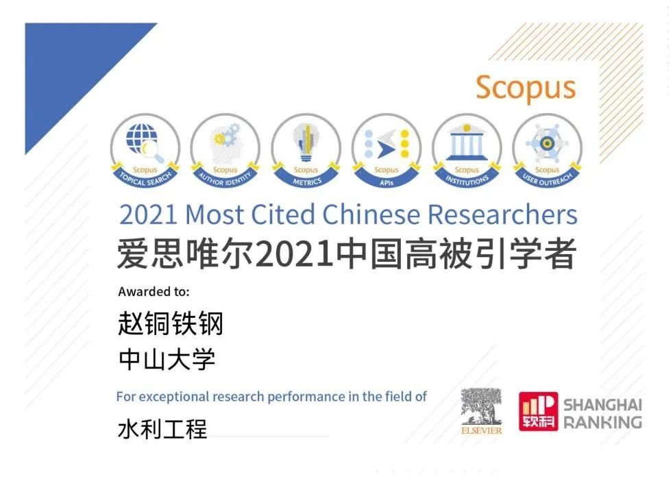 喜讯 | 我院赵铜铁钢教授入选爱思唯尔(Elsevier)中国高被引学者榜单