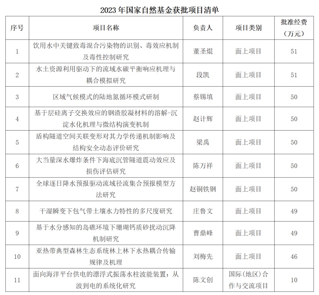 近日,2023年度国家自然科学基金项目评审结果公布,我院共获得11项国家自然科学基金项目立项。其中,面上项目10项,国际合作交流项目1项。获批立项资助总经费(直接经费)为506万元。