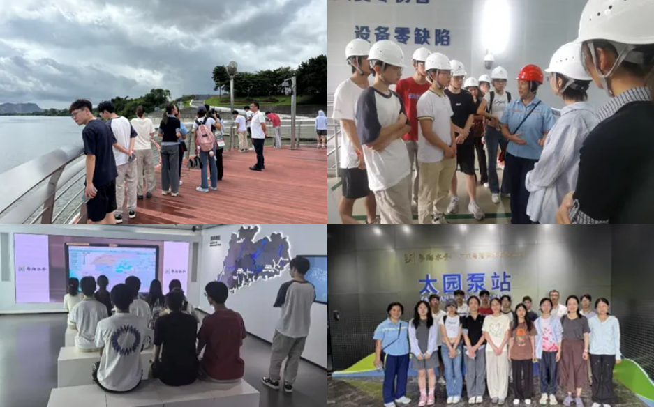 在东深供水工程取水口太园抽水泵站,同学们实地参观了取水构筑物、泵房和监控室。东深供水工程是党中央为解决香港同胞饮水困难而兴建的跨流域大型调水工程,目前,该工程运行60年来累计供水量超300亿立方米。在东深供水工程展览馆,同学们深入了解了东深供水工程的建设历史、工程路线与沿线设施,感叹“时代楷模”东深供水工程建设者们“要高山低头,令河水倒流”的豪情壮志,不忘初心、牢记使命、勇挑重担、攻坚克难的精神力量历久弥新。通过实地考察取水构筑物、参观泵站控制中心并与技术人员交流,同学们对水泵机组联动控制、水量调度等专业内容有了更加直观的认识,加深了对大型引调水工程运行管理的实践认知。