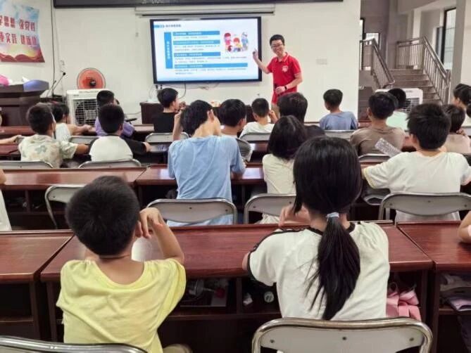 下乡期间,实践队还参加了华南理工大学“华岭砺锋突击队”组织的麻埔村中小学生暑期课堂活动,结合动画演示,以生动的语言介绍海绵城市原理,开展儿童防溺水、防诈骗宣讲等。科普小课堂寓教于乐,激发了中小学生对科学的兴趣,也增强了他们的暑期安全防范意识。