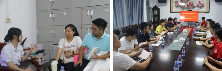 为了宣讲和走访工作顺利开展,实践队师生到达雷岭镇后与当地镇团委林苗贤主任对接,了解雷岭镇中学生毕业后去向、拟走访的各村社区情况。师生们也跟广东省水利厅、国家自然资源督察广州局、潮南区总工会驻雷岭镇帮镇扶村工作队(以下简称“工作队”)座谈交流,了解活动地基本情况。工作队队长、雷岭镇党委副书记陈竹包对师生一行到来表示热烈欢迎,他介绍了雷岭镇概况和工作队主要帮扶工作等。雷岭镇地处粤东大南山南麓,以荔枝产业作为农业支柱产业,并有油柑、龙眼等特色农产品。工作队以巩固拓展脱贫攻坚成果同乡村振兴有效衔接为帮扶工作首要任务,发挥组团单位资源优势,开展消费帮扶,大力宣传推介拓宽优质农副产品销路;积极极谋划推动河道生态治理、农村基础设施提升等项目,带动帮扶资金落地;联系省水利厅妇委会开展“爱心妈妈”结对关爱留守困境儿童活动。陈竹包队长表示,实践队下乡宣传资助政策,可以让当地群众对学生资助、国家助学贷款政策有全面、深入的了解,有助于精准帮扶困境儿童家庭,希望实践队此行有所收获,为雷岭镇乡村振兴建言献策。殷敏副书记简要介绍了实践队宣讲和调研活动方案,双方就方案一些细节深入交流。在赤坪村、南溪村的党群服务中心,师生们聆听村干部详细介绍本村社区概况,尤其是村民务农和外出务工情况、家庭困境儿童状况等,为实践队后续的走访调研和宣讲工作做好准备。