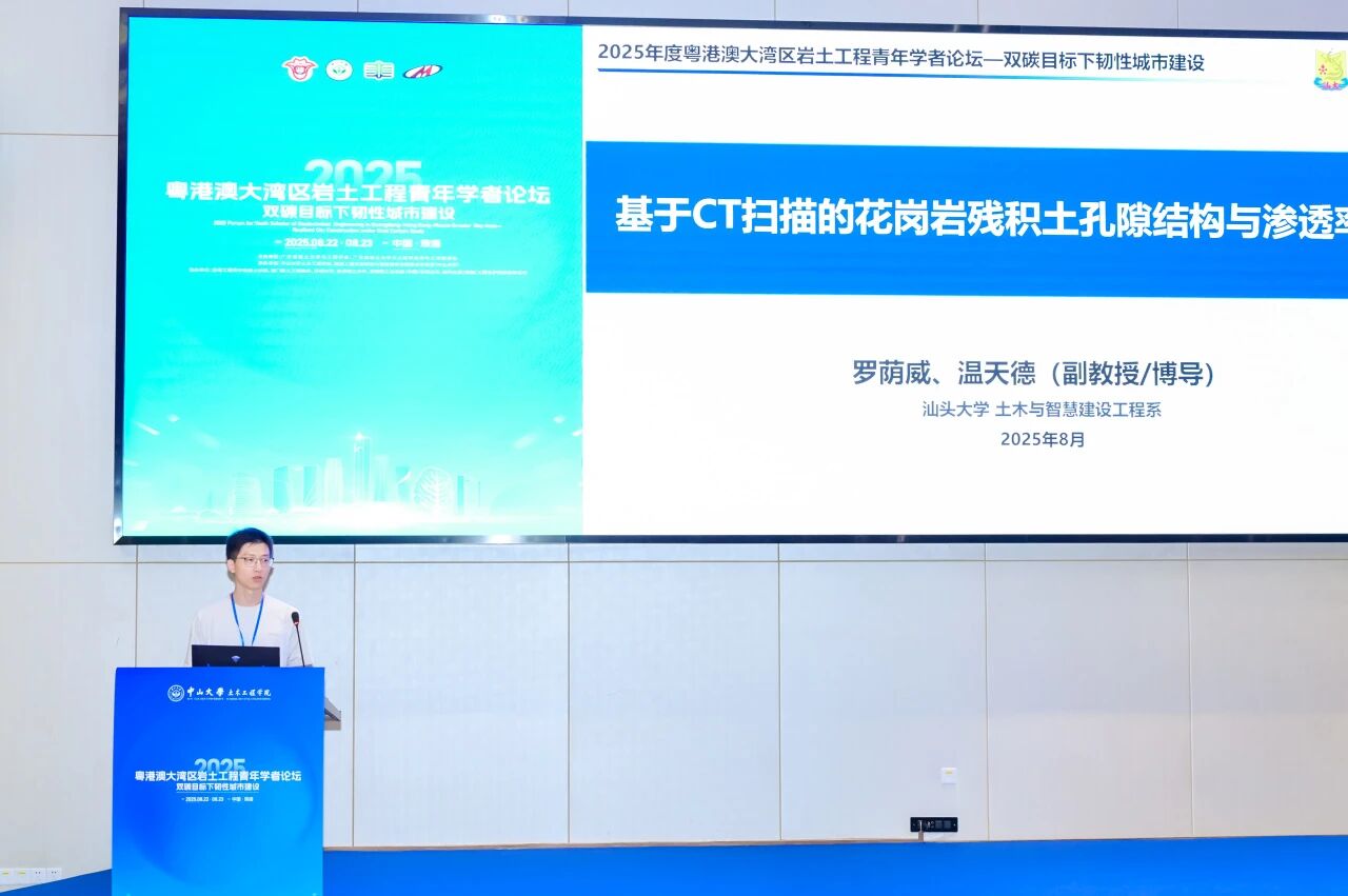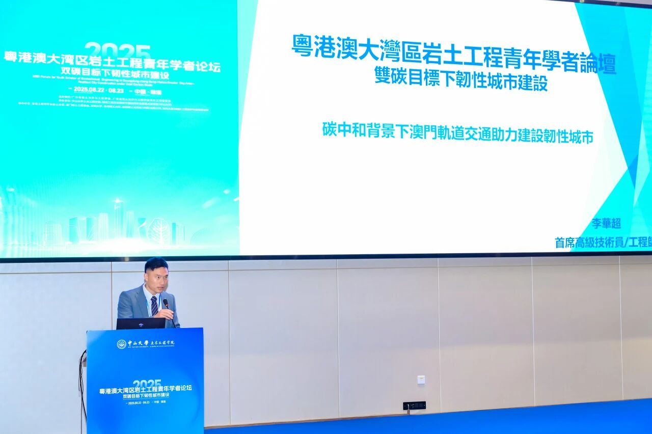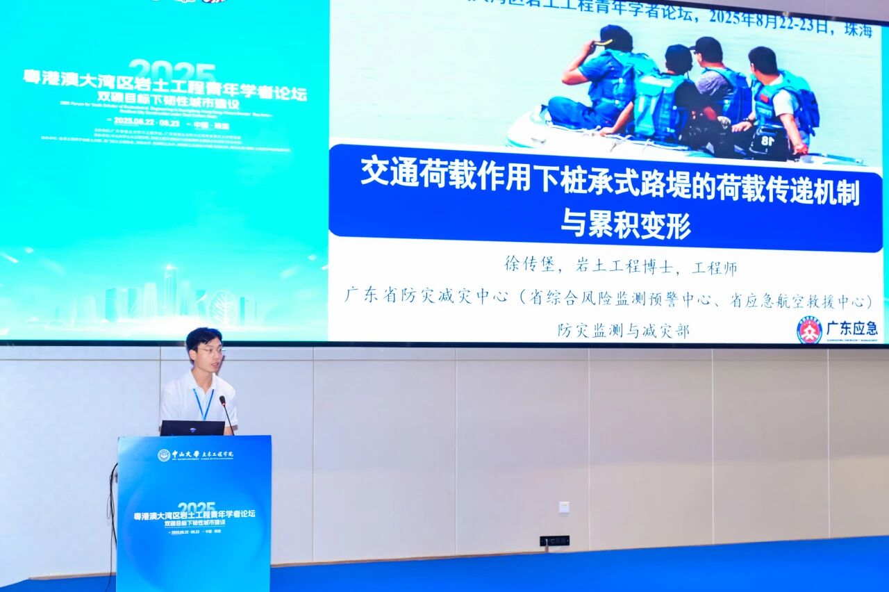 8月23日,由我院承办的“2025年度粤港澳大湾区岩土工程青年学者论坛”在珠海校区顺利举行。本次论坛以“双碳目标下韧性城市建设”为主题,在粤港澳大湾区工程师联合体、广东省工程师学会、香港工程师学会、澳门工程师学会的共同指导下,由广东省岩土力学与工程学会及其青年工作委员会主办,中山大学太阳集团tyc86、隧道工程灾变防控与智能建养全国重点实验室(中山大学)联合承办,并得到香港工程师学会岩土分部、澳门岩土工程协会、深圳大学、香港理工大学、美特斯工业系统(中国)有限公司、瑞马丸建(安徽)工程支护科技有限公司等多家单位的协办支持。