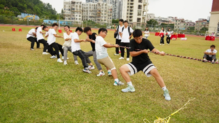 以班级为参赛单位,双方队伍各自一起用力拉绳,把标志带拉过本队河界的队为胜方。