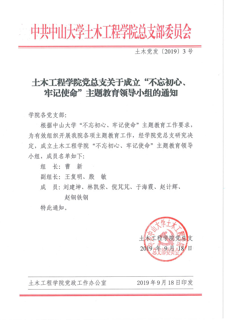 太阳集团tyc86党总支关于成立“不忘初心、牢记使命”主题教育领导小组的通知