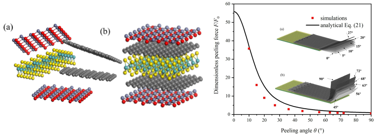Kui Lin, Ya-Pu Zhao*. Mechanical peeling of van der Waals heterostructures: Theory and simulations. Extreme Mechanics Letters, 30: 100501 (2019). (Q1, Citations: 38)